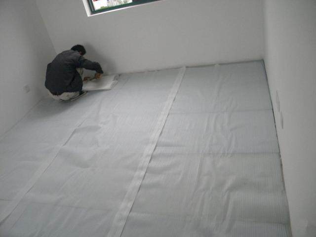 但防潮膜很容易被尖銳物體劃破,所以這就要求鋪設(shè)防潮膜之前一定要保證地面平整干凈沒有異物,防止有尖銳物體劃破防潮膜,從而影響防潮效果。鋪設(shè)時直接把防潮膜裁切好后鋪在地面上,最好整張使用減少縫隙,防潮膜鋪貼完成之后再在上面鋪上一層粗砂,這是因?yàn)榇稚氨旧硇纬傻目紫毒哂袃λ阅?,?dāng)粗砂吸水達(dá)到飽和后,上下層的水就不能相互滲透,從而達(dá)到防潮效果。